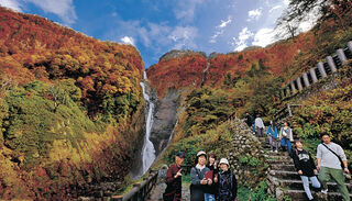 | 錦の称名滝、紅葉見頃県内前日比10度下がる 立山町芦峅寺の国名勝・称名滝で紅葉が見頃となった。日本一の落差350メートルを誇る滝が色づいた木々に彩られ、大勢の観光客が絶景を楽しんだ。富山市婦… (出典:) |