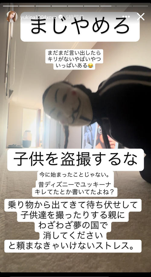 続けての投稿で「まじやめろ」と怒りをあらわにし「まだまだ言い出したらキリがないやばいやついっぱいある 子供を盗撮するな 今に始まったことじゃない