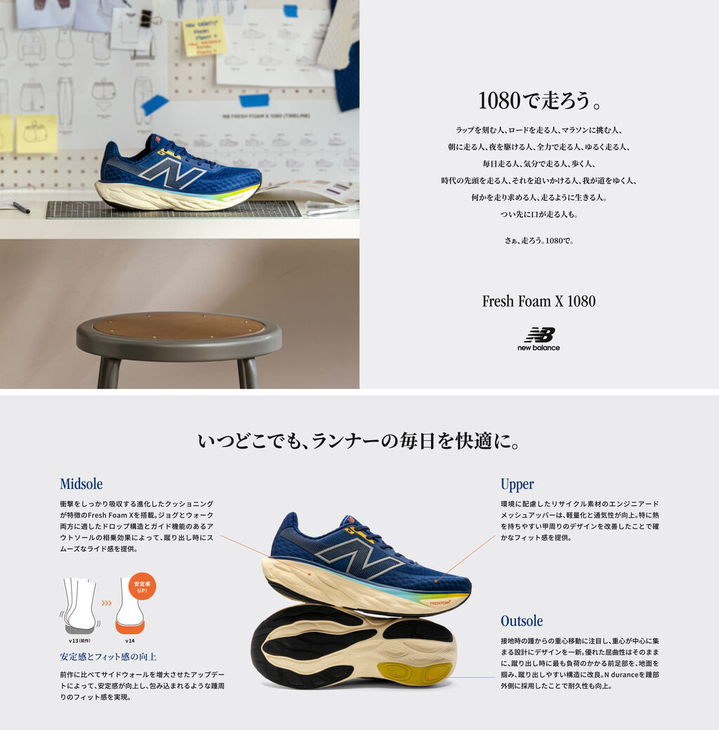 | ニューバランス「Fresh Foam X 1080」がアップデート! 安定性が増してさらに快適に …ニューバランスの「Fresh Foam X 1080(フレッシュフォーム エックス 1080)」は、ランナーの日々のトレーニングを支えるデイリートレ… (出典:) |