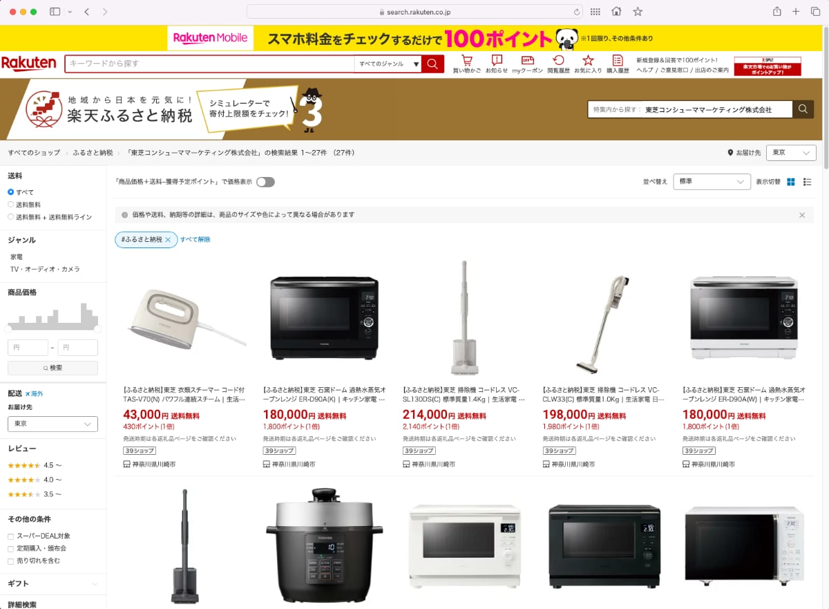 @TY_MM109川崎市の“ふるさと納税返礼品”に東芝ライフスタイルの家電 オーブンレンジや掃除機など22品 12月2日各種ふるさと納税ポータルサイトで申込受付開始 itmedia.co.jp/news/articles/…