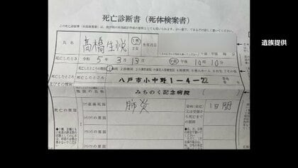 司法解剖の結果、死因は頭部や顔面の損傷などと判明。しかし病院が作成した死亡診断書には「肺炎」と記載されていたという。
