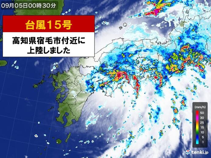 @281_1台風15号 高知県宿毛市付近に上陸 四国では土砂災害、河川の氾濫に厳重警戒を(ウェザーマップ) news.yahoo.co.jp/articles/f612e…