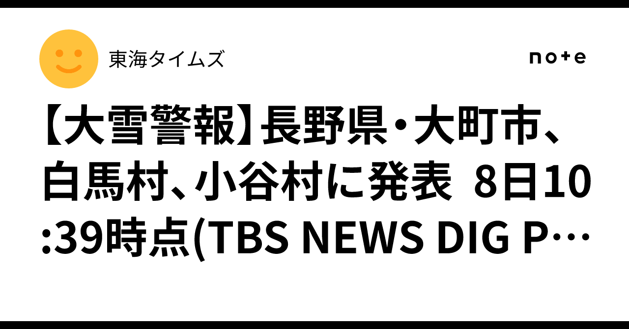 @KXj8t42cCNbZ7ft【大雪警報】長野県・大町市、白馬村、小谷村に発表 8日10:39時点(TBS NEWS DIG Powered by JNN)|東海タイムズ note.com/mantyo/n/n9cc4…