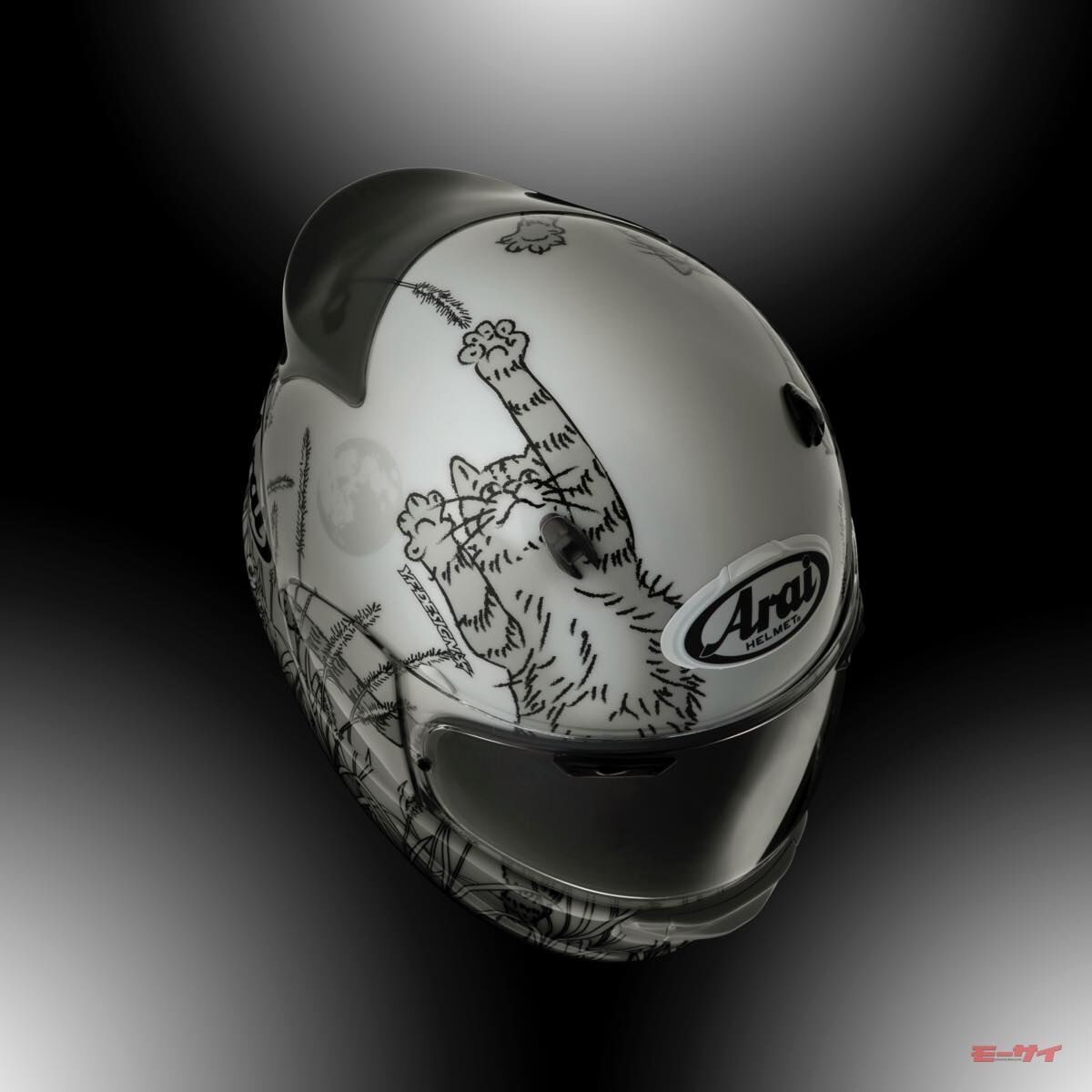 かわす性能を追求したアライ「アストロ‐GX ネコ」 人気の万能型フルフェイスモデルに、大胆な猫デザイン登場