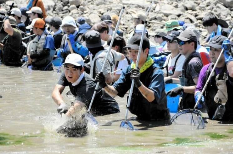 福井城址のお堀の水を抜いた結果、2000匹以上の水生生物を発見し、地域の生態系の重要性を再認識。