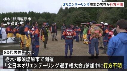 栃木・那須塩原のオリエンテーリング大会で80代男性が行方不明、安全捜索中。